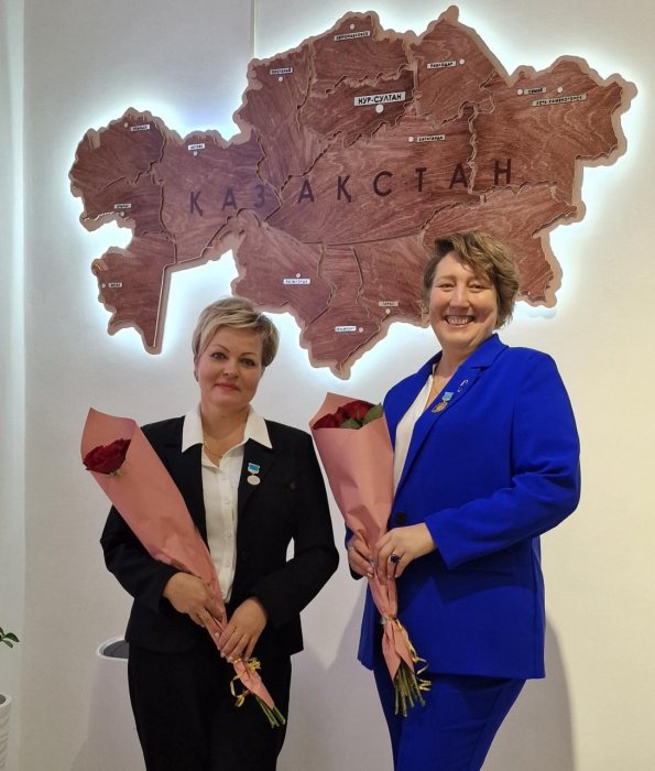 Қазақстан Республикасының білім беру саласындағы ерекше еңбегі үшін "БІЛІМ БЕРУ ІСІНІҢ ҚҰРМЕТТІ ҚЫЗМЕТКЕРІ" төсбелгісімен Б.Ахметов атындағы жоғары педагогикалық колледжінің арнайы пәндер оқытушысы Вычка Ольга Владимировна марапатталды.