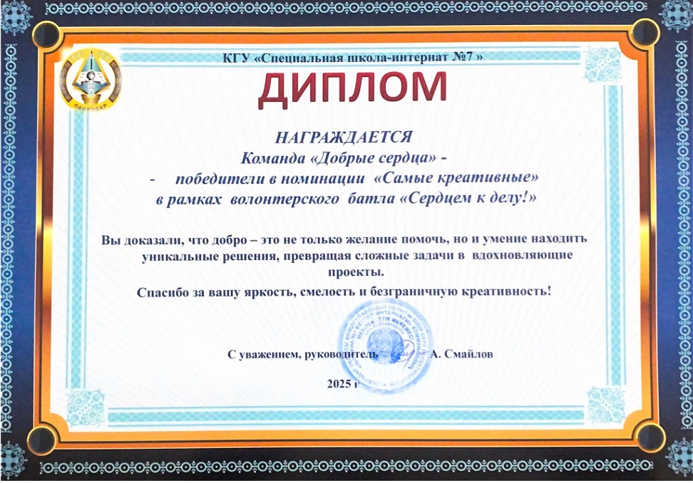 Іс-шара өте жарқын, қызықты және динамикалы түрде өтіп, барлық қатысушыларға жағымды эмоциялар сыйлады. Баттл қорытындысы бойынша біздің команда белсенді қатысқаны үшін дипломымен марапатталды — бұл студенттеріміздің еріктілік қызметін дамытуға қосқан үлесін айқын көрсетеді.